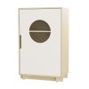 Menší šatní skříň s tyčí je vhodná k věšení oblečení pro malé děti, které budou mít vše krásně na dosah. V pozdějším věku po přidání police využijí děti skříň například na knihy a hry. Díky kruhovému okénku bude děti výběr a ukládání oblečení opravdu bavit.