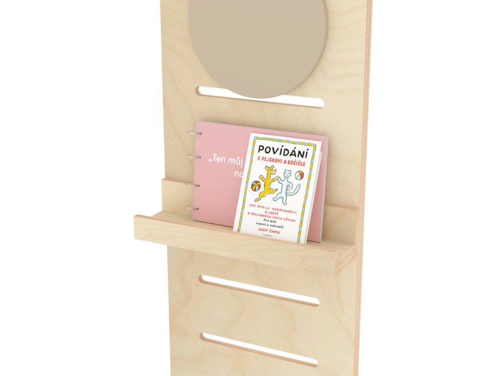 Mělká polička, na které vystavíte oblíbené figurky i vítězné poháry. Jde zavěsit na stěnu nebo na interaktivní panel. V blízkosti postele se osvědčila jako odkládací polička na vše, co děti chtějí mít u sebe při spaní - plyšáka, budík, lampičku nebo rozečtenou knížku. K dostání také v širší variantě.