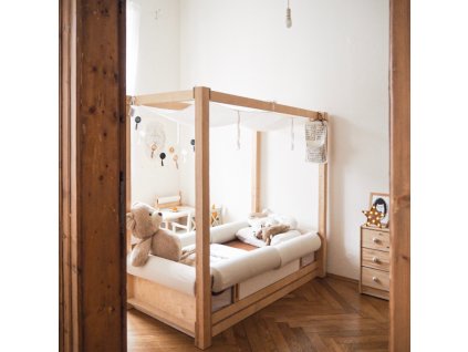 Víme, jak dokáže být dětský nábytek namáhaný, a proto jej vyrábíme z kvalitní březové překližky a ručně stříkaných MDF desek v truhlářské dílně v Čechách. Všechny materiály jsou certifikovány jako zdravotně nezávadné. Hrany nábytku jsou zaoblené a žádné úchyty nezasahují do prostoru.