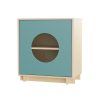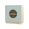 Do skřínky z březové překližky s dvířky můžete uložit hry nebo plyšáky. Díky kruhovému okénku budou mít děti přehled, jaké hračky skřínka ukrývá. Skřínka se během chvilky stane pračkou, kuchyňkou nebo domkem pro panenky, dětské fantazii se meze nekladou.