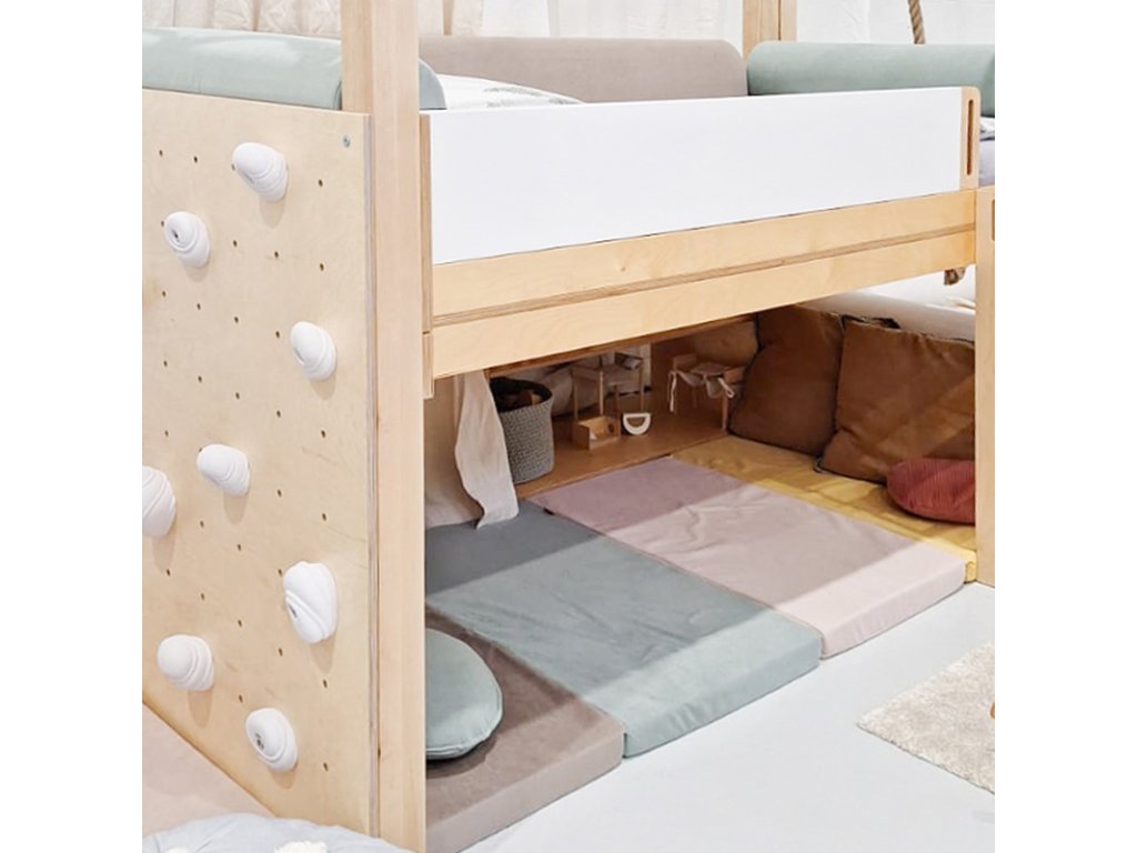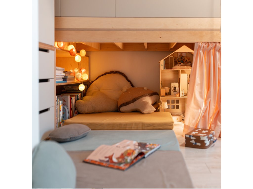 Hravá skládací žíněnka zútulní prostor pod zvýšenou postelí a poslouží k dennímu odpočinku při hře nebo čtení knížek.